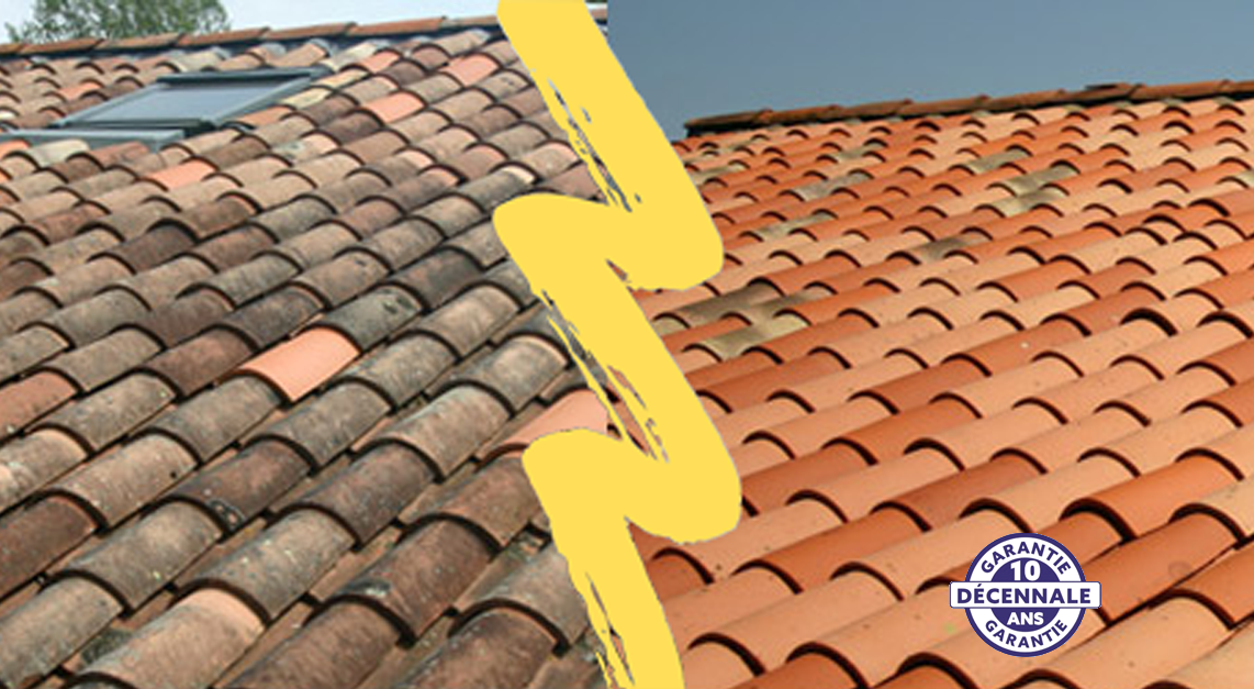 En fonction du type de salissure et du type de tuile, il est parfois nécessaire de recouvrir la toiture d’un produit nettoyant avant de le rincer. Il s’agit d’un produit bio, qui ne nuit pas à l’environnement. Apres application il faut le rincer. Puis est recommandé l’application d’un hydrofuge de surface ce produit dresse une barrière invisible qui empêche la pénétration ou l’agression d’éléments indésirables sur le support.